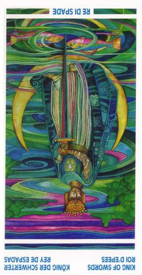 The King of Cups uses his intuition to achieve his ideals. Since Cups are turned inward, and Kings turned to the outside world, this card might be a difficult one, or it could be a powerful one.