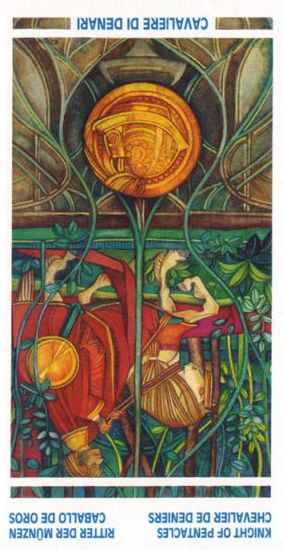 Pages explore and gather information about the road ahead, with an almost naive attitude. The Page of Pentacles is sometimes described as a bridge builder; Pentacles is the suit where the actual work is done, and the Page here enables those that follow to quickly cross difficult terrain.