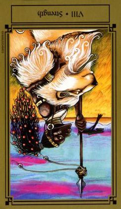 Strength is the second of the four midieval values. Justice, card 11, is the first, and the third, Temperance, is card 14.