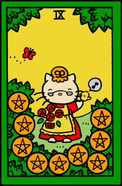 The 9 of Pentacles represents earned rest. The element Earth, attached to the Pentacles suit, appreciates the rest that completion of hard work brings. This is a good time for games and relaxation.