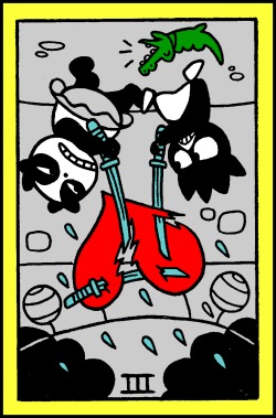 This card is about exposing your new ideas to the world. The Wand's element fire goes well with the number 3, as 3 is an output number, a number of results. Fire likes getting to results quickly.