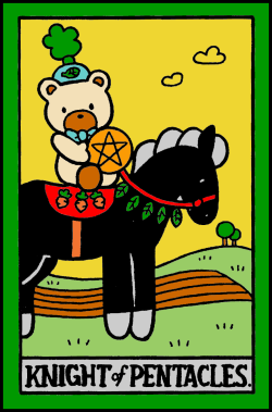 The Knight of Pentacles doesn't like to get worked up about anything. He prefers to make quiet steady progress by sticking to a persevering attitude, while not allowing himself to become exhausted or stressed.