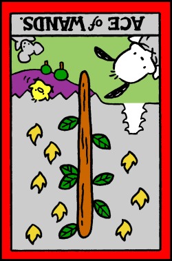 The ace of wands represents the beginning of an idea. The element fire and the number 1 give a powerful combination: enterprise and new beginnings apply to both. This is an energetic combination, which is why the card is generally considered a positive one. Spring is the season associated with this card.
