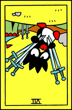 The 5 of Swords is about facing reality. The 5 is an assignment number, and in the slighly more difficult suit of Swords, it means you face a difficult challenge where your past experiences could hold you down.