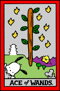 The ace of wands represents the beginning of an idea. The element fire and the number 1 give a powerful combination: enterprise and new beginnings apply to both. This is an energetic combination, which is why the card is generally considered a positive one. Spring is the season associated with this card.