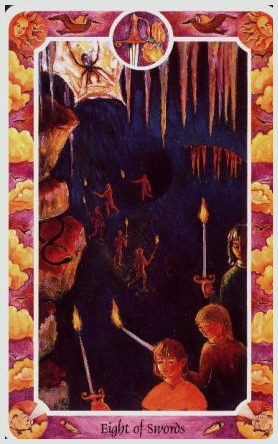 The 8 of Swords is about slowly regaining strength and energy. The 8 is an assignment number, and in the element of Swords it's a bit harder than usual.