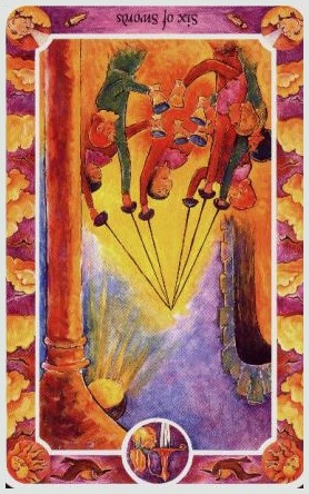 The 6 of Swords is a reward number after the hard assignment in 5 of Swords, it brings you to a safe place to rest a bit.