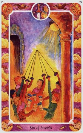 The 6 of Swords is a reward number after the hard assignment in 5 of Swords, it brings you to a safe place to rest a bit.