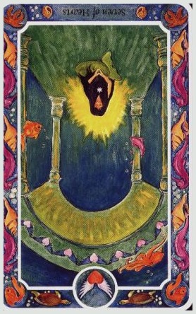 The 7 of Cups is about making a choice between different ideals. But Cups, with the water element, don't like making definitive choices that much, making this 7 in this suit a bit of a hard choice.