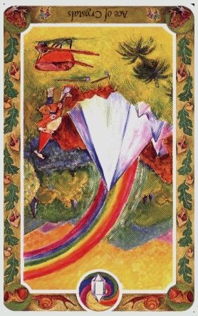 When this card falls, it might serve to point your attention to whatever is new and fresh in your life; a new job, study, love relation, business relation, project, etc. Look to the other cards in the reading to see what more can be said about it.