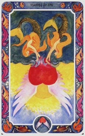 The number 1, associated with this Ace card, is the number of a fresh start with yet more new impulses coming your way. It might be compared to The Fool, the first card of the major arcana.
