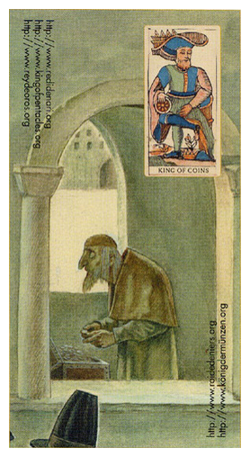 The King of Pentacles uses his Earthly attributes to rule. He goes about his work like an old style business man; he avoids unnecessary risks, aims for real results, and acts from confidence.