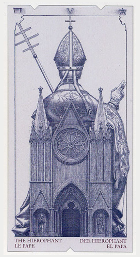 Where The Emperor is the chief of worldly power, The Hierophant is the head of spiritual matters.