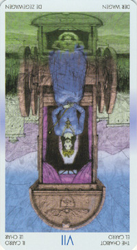 During the prevous card, The Lovers, all the wisdom of the first cards in the deck has been processed and a choice was made for personal growth. Now it's time to do something with all this baggage, to actually travel the road. A lot has been done so far, wisdoms have been accumulated and integrated into one's personality.