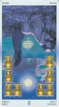 8 is an assignment number, and in the suit of Cups, it is about overcoming the urge to sink into depression caused by view on the long road ahead.