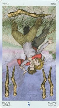 The 5 of Wands represents competition. The 5 is the second assignment number, and therefore a difficult card. 5 combined with the Wand's element fire challenges you. You'll have to fight hard for your idea, but you stand a good chance of succeeding.