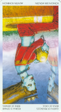 The Queen in the suit of Pentacles becomes aware of her Earthly attributes; she's reliable and sober, able to give good advice.