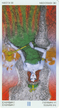 The Empress carries the number 3. This is the number of birth, of plenty, of harvest, of summer, of the first results. The number 3 stands for joy and fun, for creativity and fantasy, for warmth and humor.