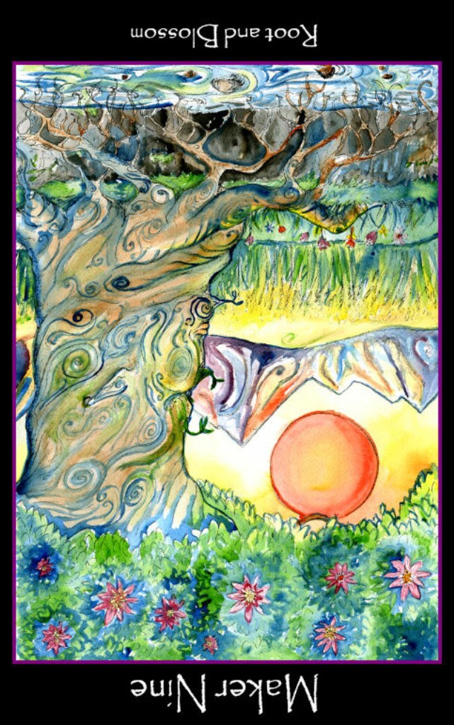 When this card falls, it might serve to point your attention to whatever is new and fresh in your life; a new job, study, love relation, business relation, project, etc. Look to the other cards in the reading to see what more can be said about it.