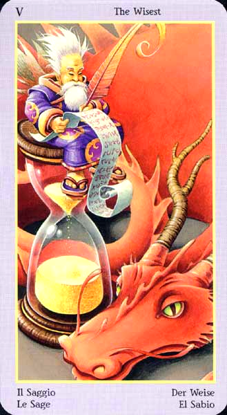 The Hermit shuts out the world and retreats into solitude to better understand some spiritual aspect of life. He opens to the cosmos and lets it's wisdom sink in. Hermits are often seen as wise old men who can guide a traveller along a journey.