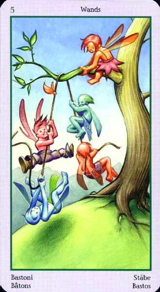 The 5 of Wands represents competition. The 5 is the second assignment number, and therefore a difficult card. 5 combined with the Wand's element fire challenges you. You'll have to fight hard for your idea, but you stand a good chance of succeeding.