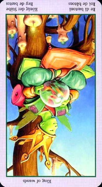 The King of Wands uses the properties of Wands (vitality, optimism, enthousiasm) to go out with confidence. He is seen as a leader with charisma.