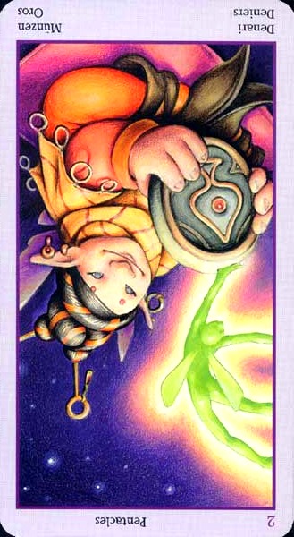 The 2 of Pentacles is an assignment number card, and the assignment here is to maintain a happy and relaxed attitude during a wait for results of what you started.