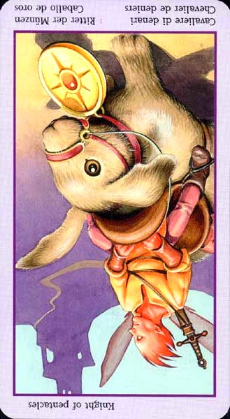 The Knight of Pentacles doesn't like to get worked up about anything. He prefers to make quiet steady progress by sticking to a persevering attitude, while not allowing himself to become exhausted or stressed.