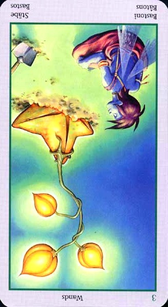 This card is about exposing your new ideas to the world. The Wand's element fire goes well with the number 3, as 3 is an output number, a number of results. Fire likes getting to results quickly.