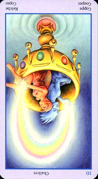 The 10 of Cups is the link to the Swords suit. It is time to leave your own emotions behind and face the world and the tasks ahead.