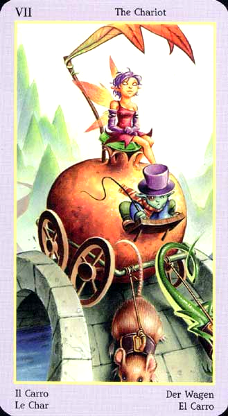 During the prevous card, The Lovers, all the wisdom of the first cards in the deck has been processed and a choice was made for personal growth. Now it's time to do something with all this baggage, to actually travel the road. A lot has been done so far, wisdoms have been accumulated and integrated into one's personality.