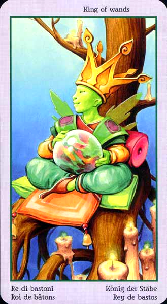 The King of Wands uses the properties of Wands (vitality, optimism, enthousiasm) to go out with confidence. He is seen as a leader with charisma.