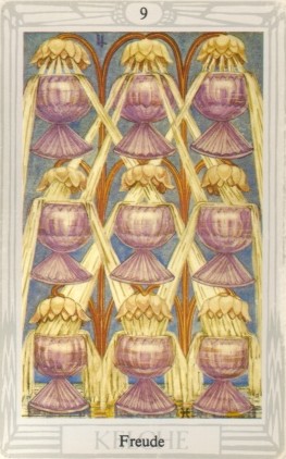 The 9 of Cups represents achievement and contentment. It is an excellent time to take some rest and enjoy yourself.