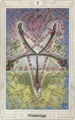 The 5 of Swords is about facing reality. The 5 is an assignment number, and in the slighly more difficult suit of Swords, it means you face a difficult challenge where your past experiences could hold you down.