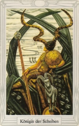 The Queen in the suit of Pentacles becomes aware of her Earthly attributes; she's reliable and sober, able to give good advice.