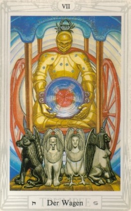 During the prevous card, The Lovers, all the wisdom of the first cards in the deck has been processed and a choice was made for personal growth. Now it's time to do something with all this baggage, to actually travel the road. A lot has been done so far, wisdoms have been accumulated and integrated into one's personality.