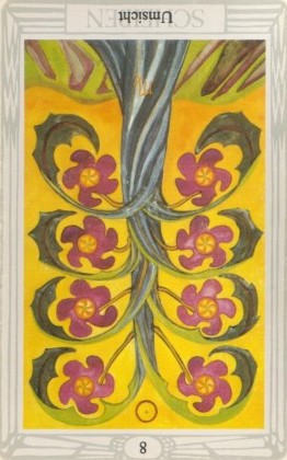 The Star carries the number 17, composed that is 8. This composed number is an assignment number, like 5 is. It is a nice card, but one where work is to be done as well.