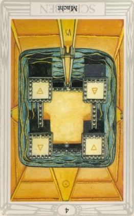 The 4 of Pentacles is about holding on to what you got. The number 4 represents structure and order, and fits well with the suit's element, Earth.