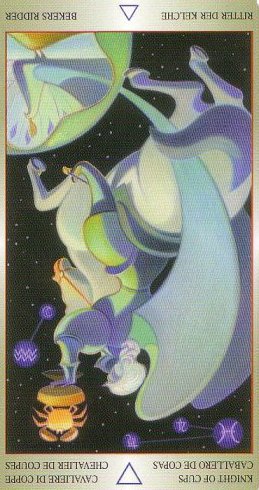 The King of Cups uses his intuition to achieve his ideals. Since Cups are turned inward, and Kings turned to the outside world, this card might be a difficult one, or it could be a powerful one.
