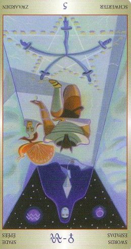 The 5 of Swords is about facing reality. The 5 is an assignment number, and in the slighly more difficult suit of Swords, it means you face a difficult challenge where your past experiences could hold you down.