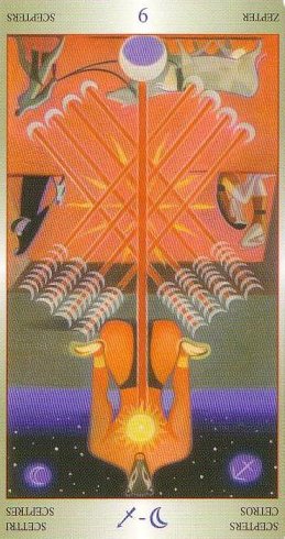 The 2 of Wands represents the research and digestion of a new idea. The number of this card and it's element are somewhat in conflict; while the 2 is focussed inwards, the Wand's element fire is outgoing. Fire wants to steam ahead while the blackbox 2 asks for patience.