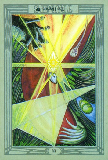 If a card is upside down, that is the common notation for the opposite meaning of the card, also known as the "negative" or "reversed" meaning of the card.