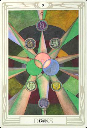 The number 1, associated with this Ace card, is the number of a fresh start with yet more new impulses coming your way. It might be compared to The Fool, the first card of the major arcana.