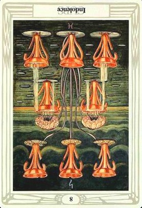8 is an assignment number, and in the suit of Cups, it is about overcoming the urge to sink into depression caused by view on the long road ahead.