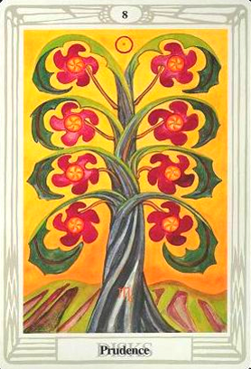 The 8 of Pentacles is about keeping up the hard work you're doing, and trying to be happy about doing that work at the same time. While the 3 of Pentacles is about completing a masterpiece, the 8 of Pentacles is about doing the apprentice work that makes you a master of your trade.