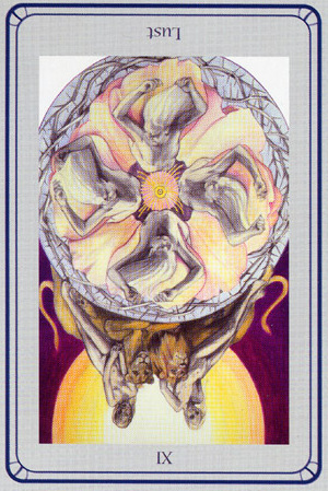 This card carries the number 11. In the Rider-Waite deck, Strength and Justice have swapped places because Waite saw links with the astrological signs Leo and Libra.