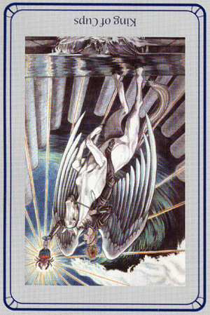 The King of Cups uses his intuition to achieve his ideals. Since Cups are turned inward, and Kings turned to the outside world, this card might be a difficult one, or it could be a powerful one.