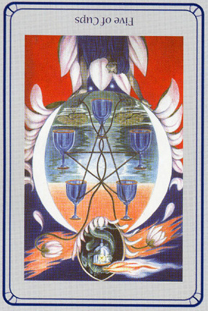 The 5 of Cups is about overcoming sadness and disappointment. You've let go of your old securities to embrace the new and exciting, now something has gone awry and you feel bad about that. But don't forget to notice those things that did go right.