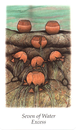 The 7 of Cups is about making a choice between different ideals. But Cups, with the water element, don't like making definitive choices that much, making this 7 in this suit a bit of a hard choice.
