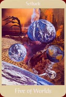 The 5 of Pentacles is an assignment-number card, and is about letting go of your securities. Pentacles element Earth (also) represents material posessions, so this card is about letting go of (some of) your worldly assets.